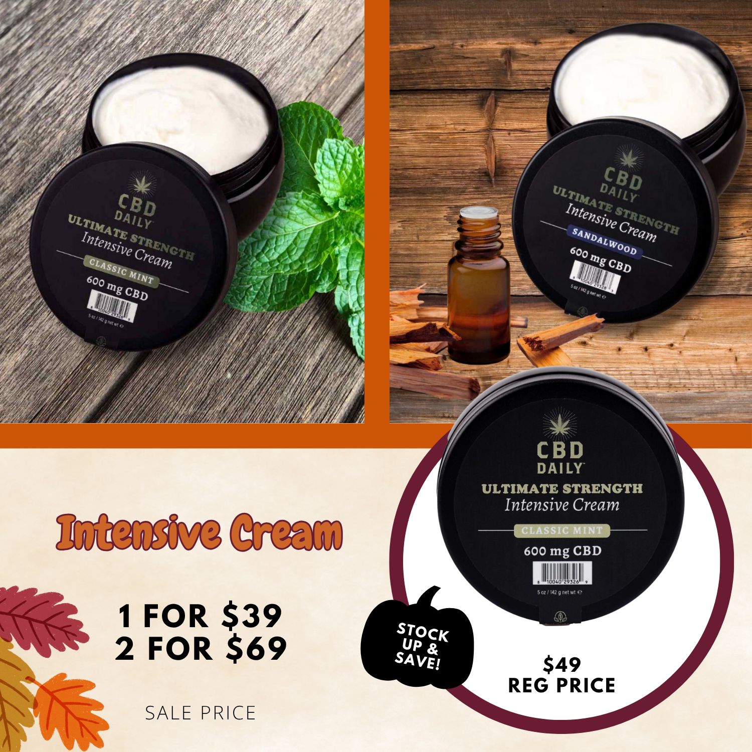 Get ultimate therapeutic relief with Daily Ultimate Strength Intensive Cream. Packed with 600 mg of 100% natural, hemp-derived extra mgs (see picture) and a proprietary blend of essential oils, our most potent formula is guaranteed to bring the immediate soothing and moisturizing sensation to a whole new level.