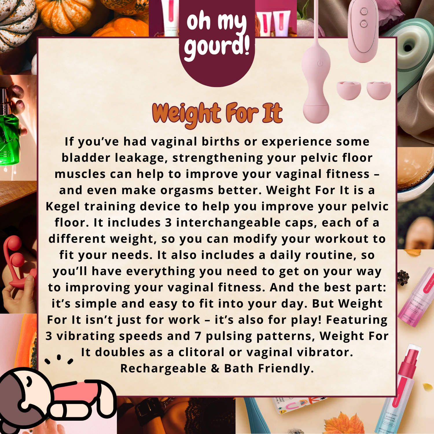 Just like you exercise to maintain the health of your body, it's important to exercise to maintain your vaginal health, as well. If you've had vaginal births or experience some bladder leakage, strengthening your pelvic floor muscles can help to improve your vaginal fitness and even make orgasms better. That's where Weight For It can help.