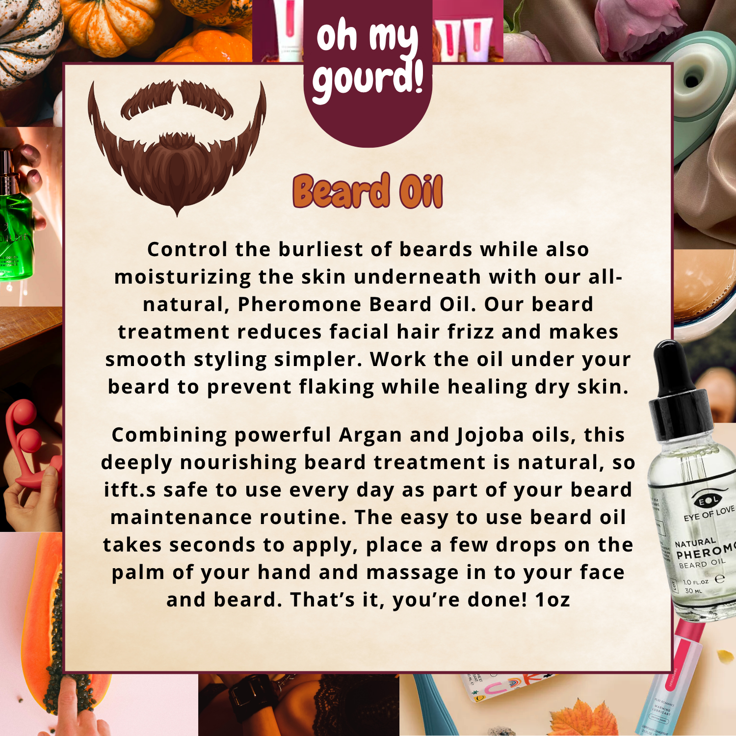Control the burliest of beards while also moisturizing the skin underneath with our all-natural, Pheromone Beard Oil. Our beard treatment reduces facial hair frizz and makes smooth styling simpler. Work the oil under your beard to prevent flaking while healing dry skin.