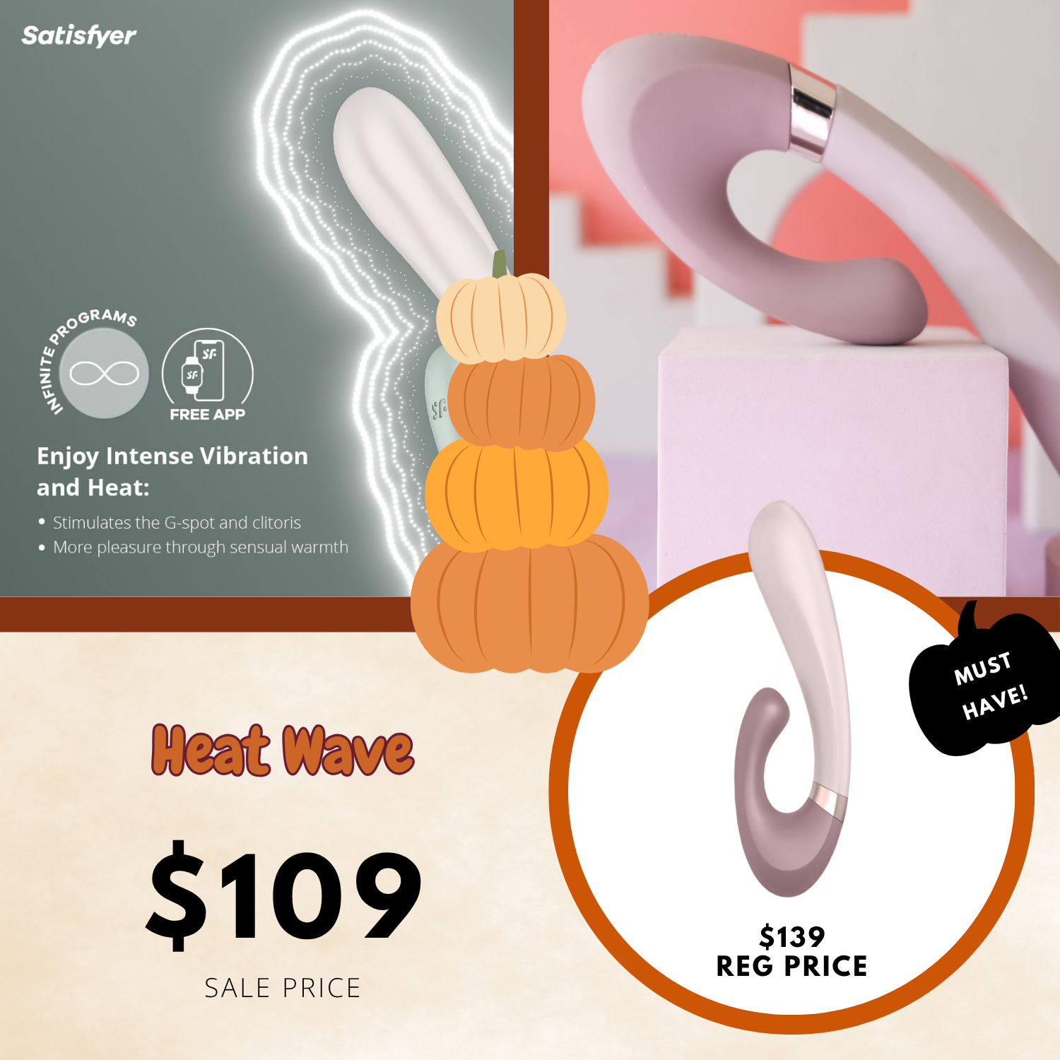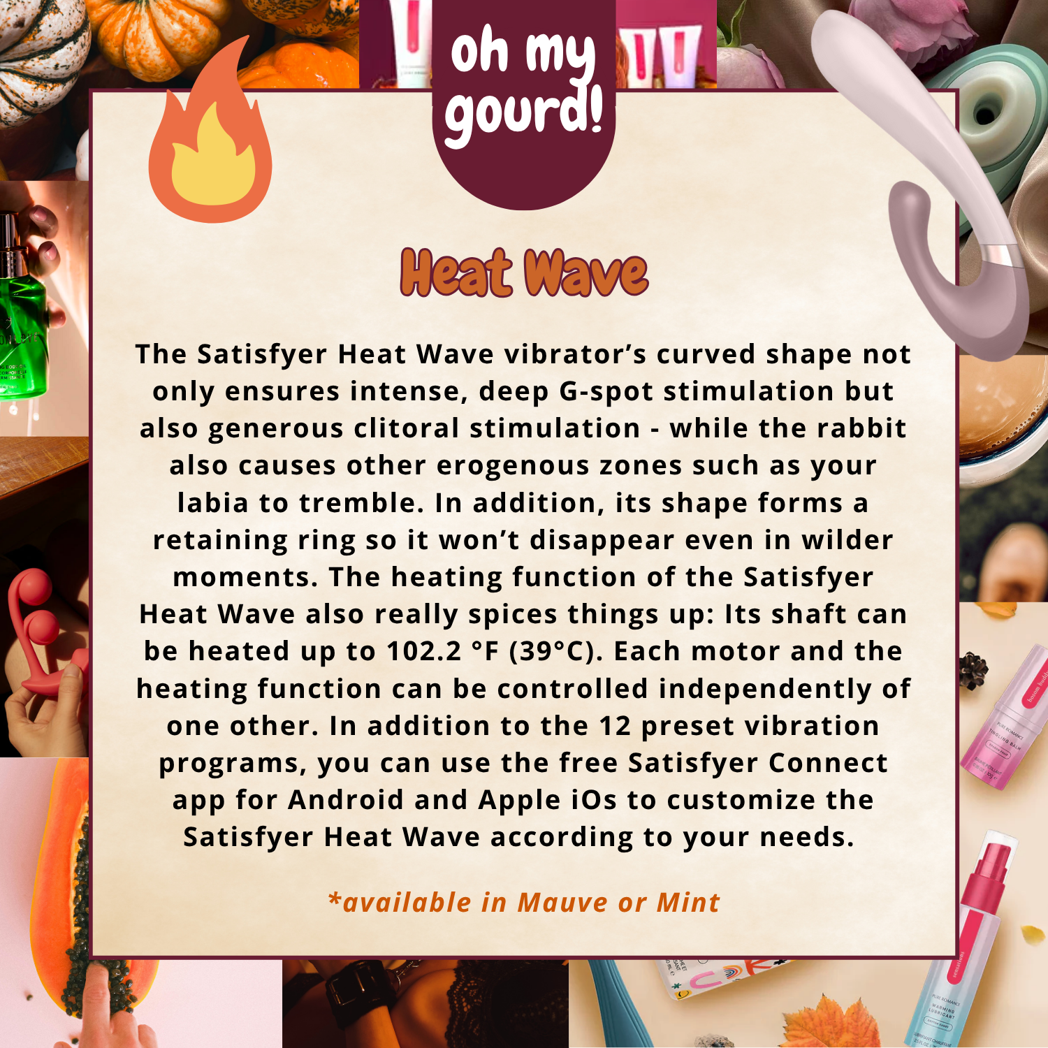 The Satisfyer Heat Wave vibrator ignites your passion in a number of ways: There is a powerful motor in its long, slightly voluminous shaft and a clitoral stimulator that seduces your hot spots with deep vibrations. Its curved shape not only ensures intense, deep G-spot stimulation but also generous clitoral stimulation - while the rabbit also causes other erogenous zones such as your labia to tremble. In addition, its shape forms a retaining ring so it won’t disappear even in wilder moments. The heating function of the Satisfyer Heat Wave also really spices things up: Its shaft can be heated up to 102.2 °F (39°C), which increases your pleasurable sensations and your capacity for orgasm and also gives you a body heat sensation. Each motor and the heating function can be controlled independently of one other. With its surface made of tender, medical-grade silicone, this heated vibrator has a particularly loving touch while pleasuring you. In addition to the 12 preset vibration programs, you can use the free Satisfyer Connect app for Android and Apple iOs to customize the Satisfyer Heat Wave according to your needs. Create your own programs, give your partner the control or connect the app to Spotify to let yourself be stimulated to the rhythm of your favorite songs. Like all Satisfyer vibrators, this lover is also waterproof (IPX7) so nothing stands in the way of hot times in the shower or bath! After use, just clean it with lukewarm water and a little mild soap and disinfect it with a special sexual wellness device cleaner. If the Satisfyer Heat Wave run out of steam, simply recharge it with the included USB charging cable. App-enabled.