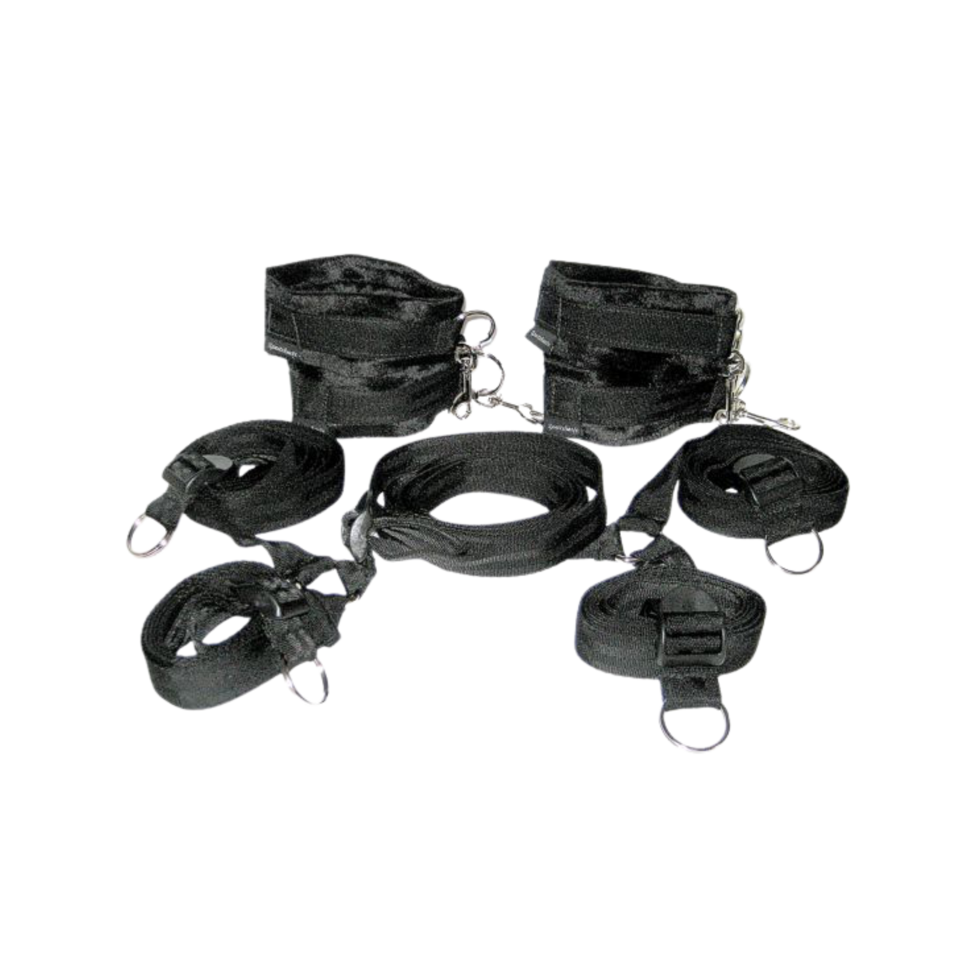 The original (yes, we invented it) Under The Bed Restraint System® is easy to set up, in fact, sets up in minutes. 4 adjustable cuffs (fits 4 inch to 12 inch wrists), four restraint straps secured to one connector strap that fits securely under your mattress. Restrains your partners' arms and legs from the sides or bottom of the bed. The restraint strap quickly fits beneath any mattress with no hooks and adjusts to the size you desire. Easy set-up on any mattress. Portable and great for a surprise getaway. Fits any size mattress and travels well Use at home or on your vacations 4 adjustable cuffs (fits 4-12" wrists), four restraint straps secured to one connector strap that fits securely under your mattress Easy set-up on any mattress Portable and great for a surprise getaway Limited Lifetime Warranty In The Box: 4 wrist/ankle cuffs 1 connector strap = 60 inches (152cm) 4 straps = 60 inches (152cm) Materials: 74% polypropylene, 10% polyester, 8% nickel free metal, 5% hook and loop, 3% ABS plastic