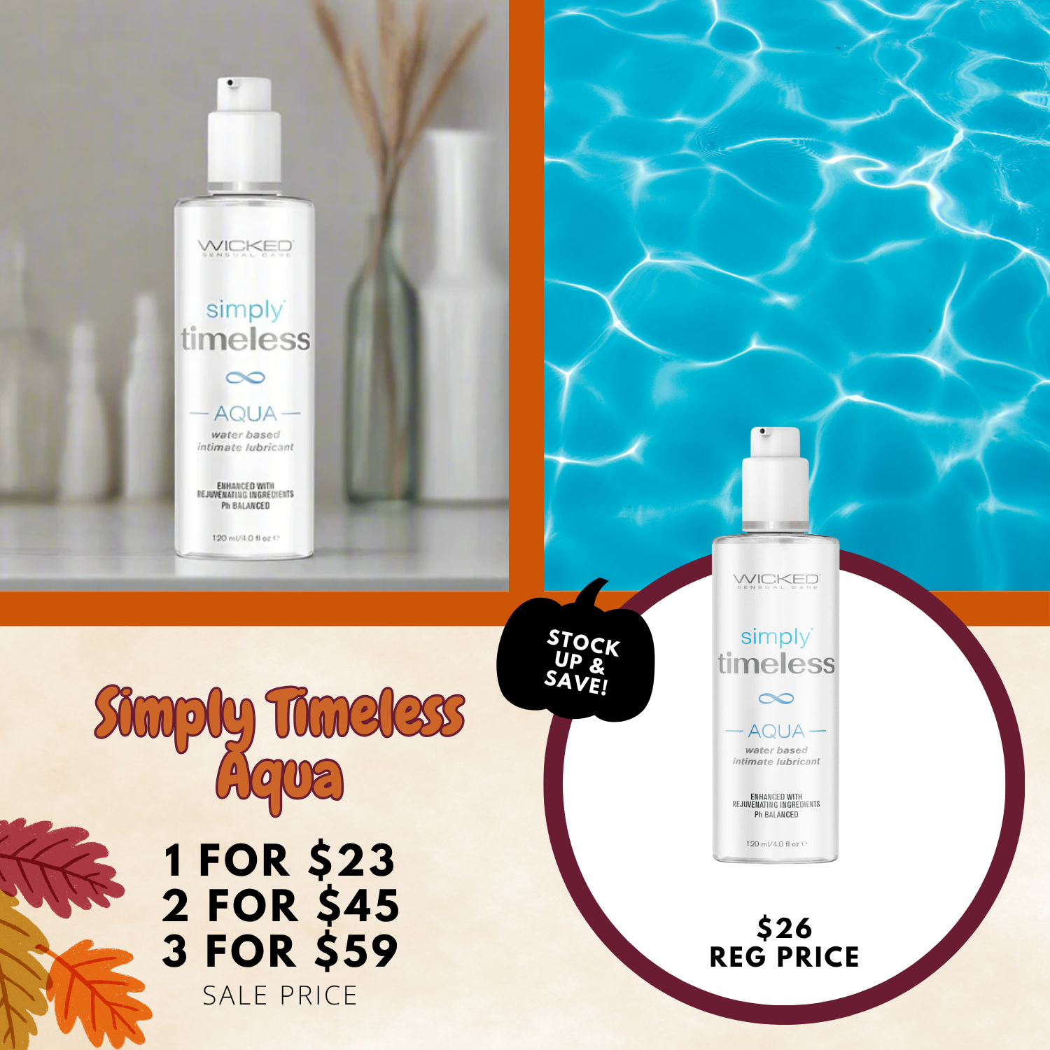 simply™ Timeless lube is uniquely formulated to address the specific needs of individuals during the perimenopausal and menopausal stages and beyond. Each formula contains ingredients that can help alleviate dryness and promote a more comfortable and satisfying intimate experience. Each lube contains supportive ingredients like aloe, olive leaf extract, squalane, and Vitamin E. These supportive ingredients are what makes it different from the rest of the simply™ line. Like all products under the simply™ label, Timeless formulas are free from glycerin, parabens, and propylene glycol. Can also be used as a daily vaginal moisturizer.